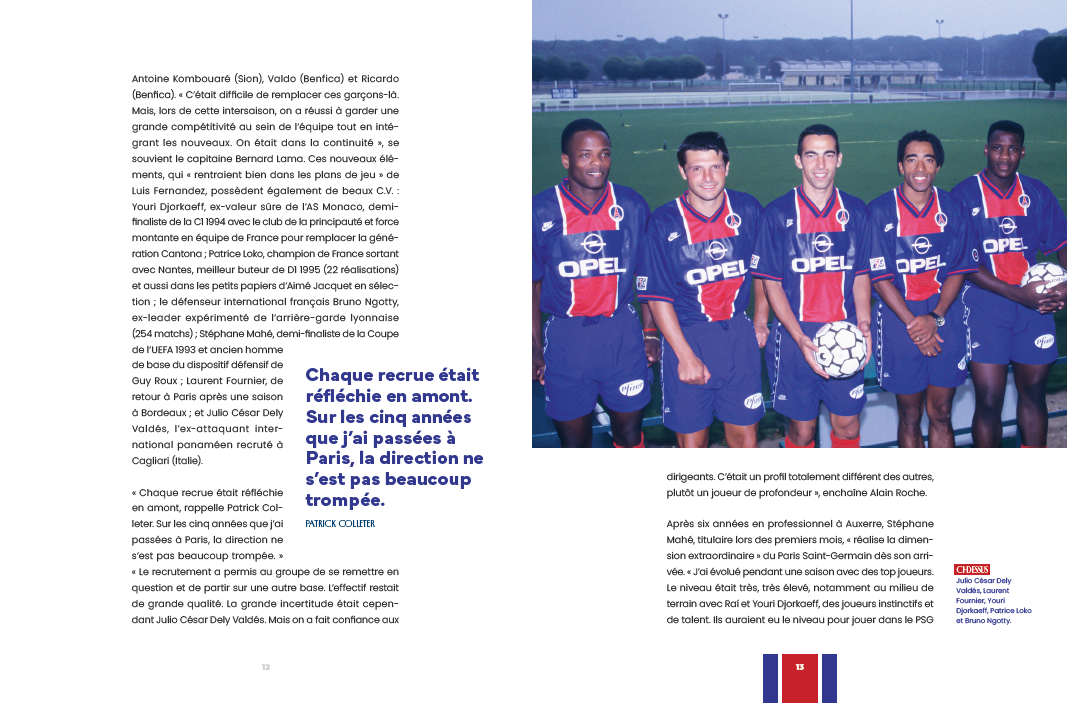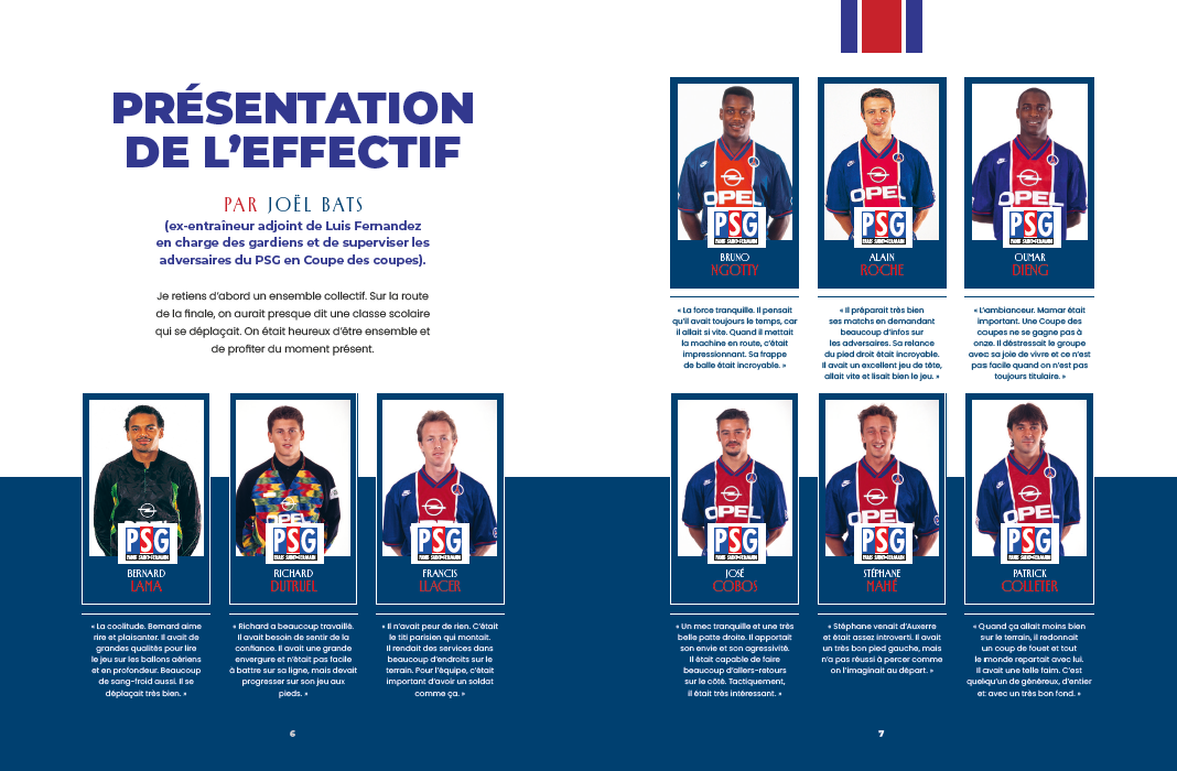 À travers cet ouvrage, revivez les coulisses de cette épopée magique grâce aux témoignages et aux anecdotes des légendes du PSG, comme Raí, Bernard Lama, Youri Djorkaeff, Alain Roche, Vincent Guérin, Bruno Ngotty, Daniel Bravo, Patrick Colleter, Laurent Fournier, Joël Bats et bien d’autres encore.